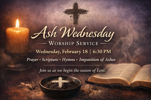 Ash Wednesday marks the start of a forty-day journey toward Easter. It is a time to pause, to remember our need for God’s grace, and to turn our hearts again toward Christ. We hope you will gather with us as we enter this sacred season together.