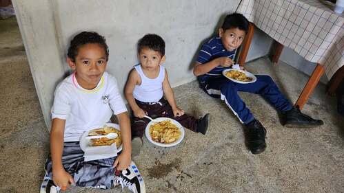 Each day begins with worship in the amphitheater before the team goes out to minister in different ways—helping with construction projects, leading Vacation Bible School and Bible studies, and serving through a weekly feeding program that provides a nutritious meal to children in the community.